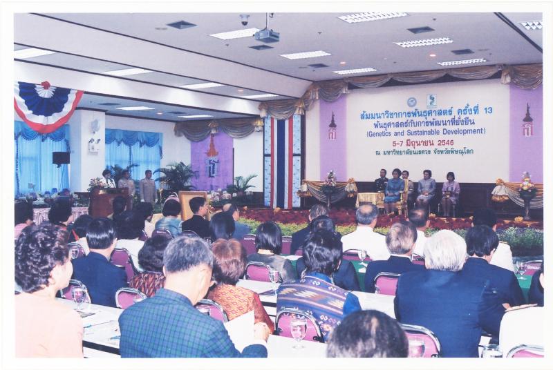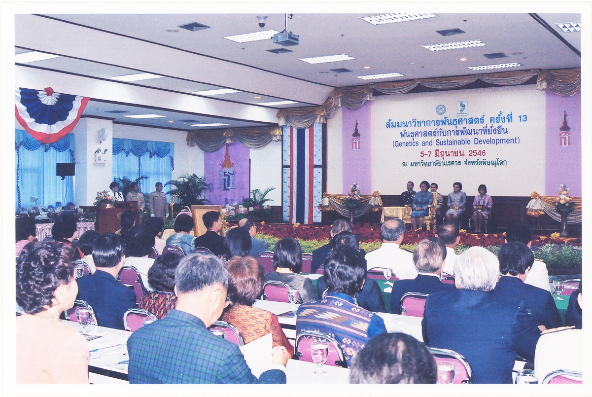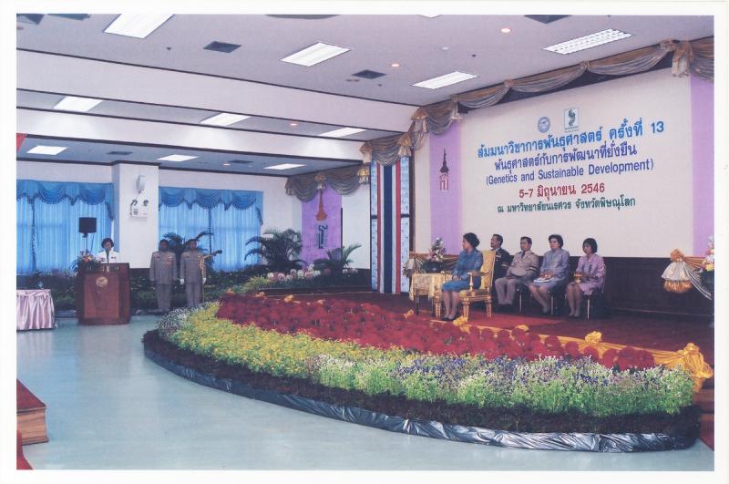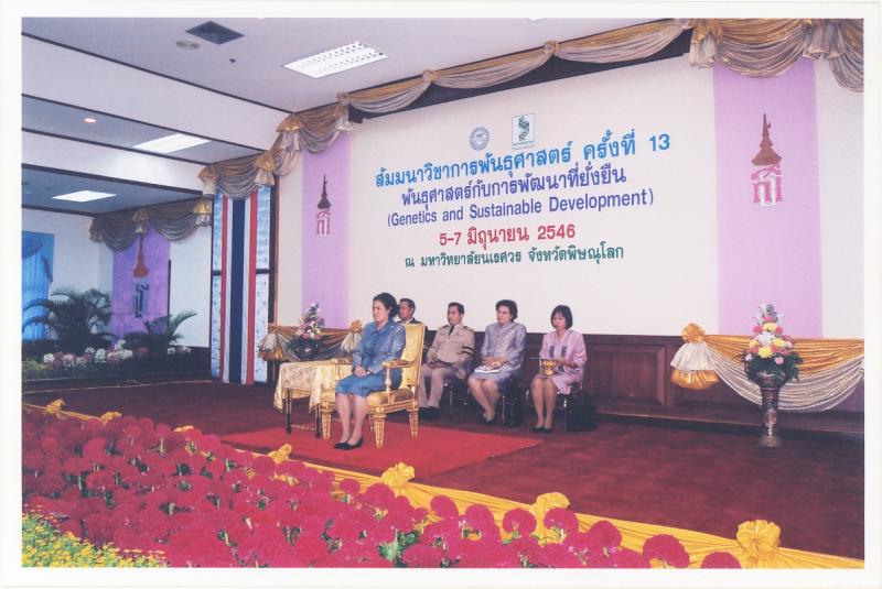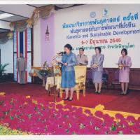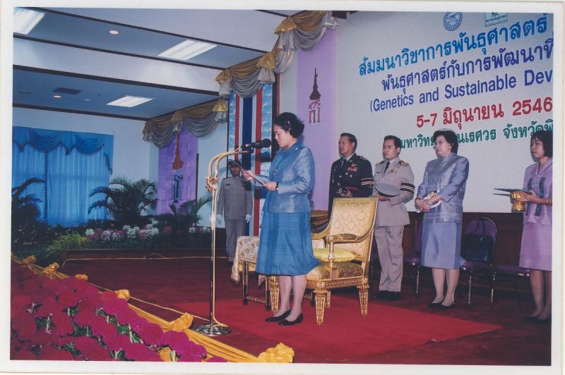 สมเด็จพระกนิษฐาธิราชเจ้า กรมสมเด็จพระเทพรัตนราชสุดาฯ สยามบรมราชกุมารี เสด็จฯ พิธีเปิดการสัมมนา พันธุศาสตร์กับการพัฒนาที่ยั่งยืน 5 มิถุนายน 2546